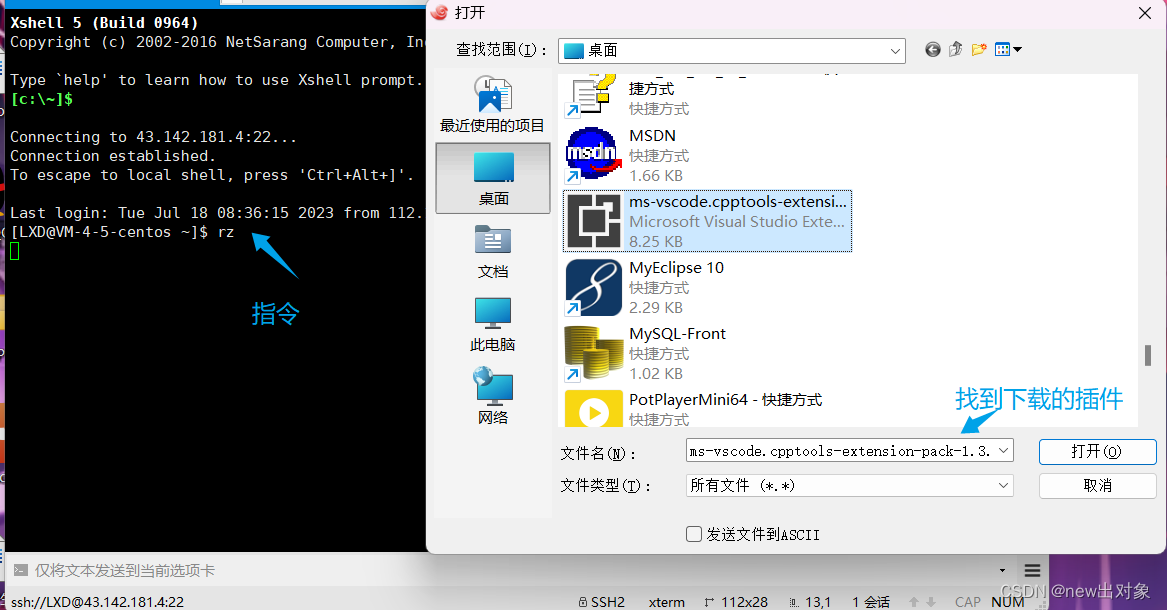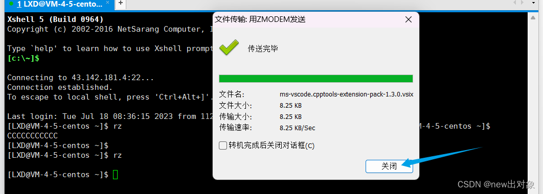 下载完成后,通过Xshell脚本将文件上传到linux上,在xshell命令行中输入 rz 可以从本地传文件到linux中。