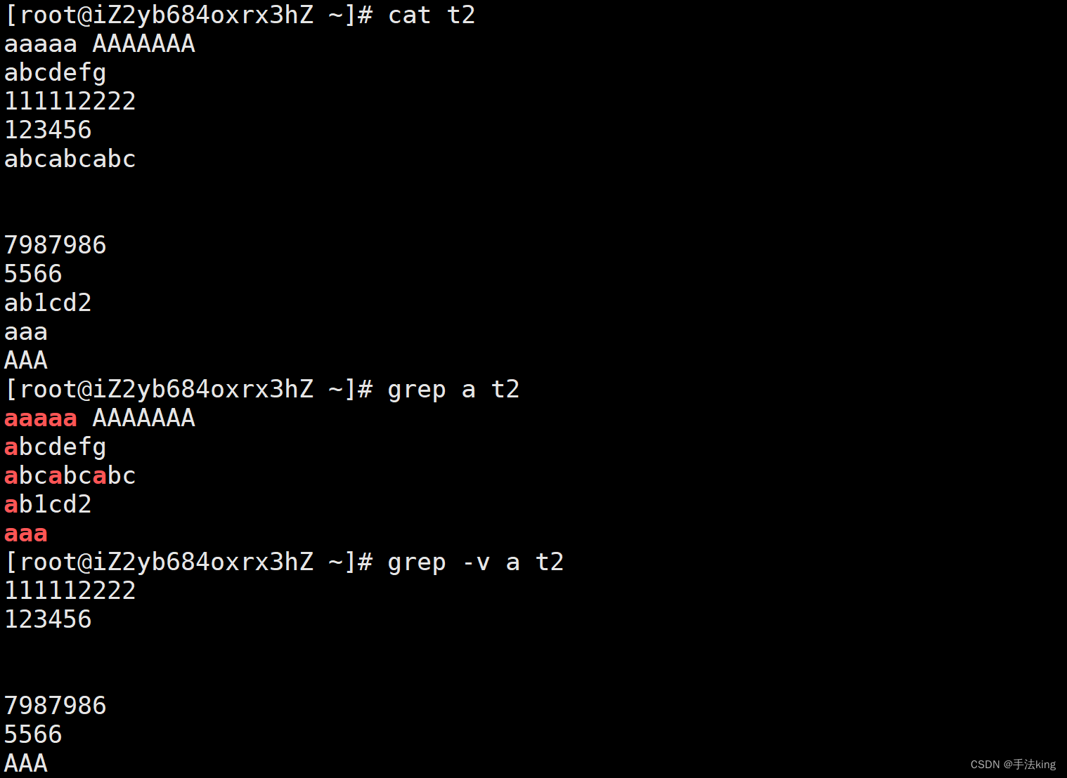 -v :反向选择,亦即显示出没有 '搜寻字符串' 内容的那一行