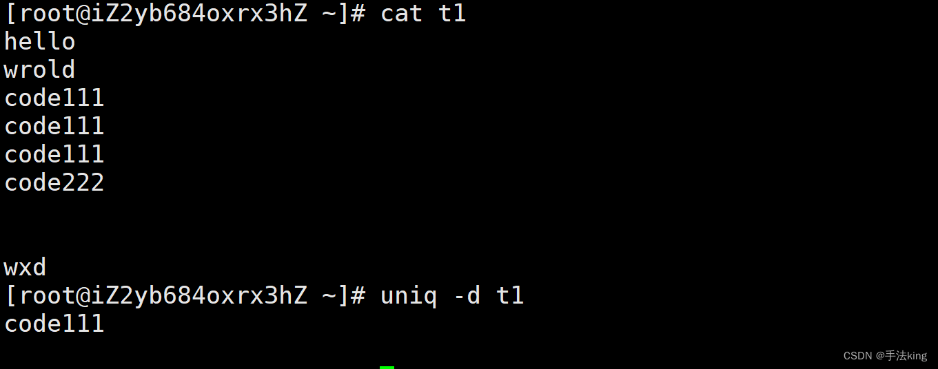 3,uniq -d