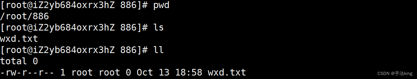 当前目录下的文件只有 wxd.txt ;
