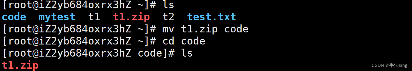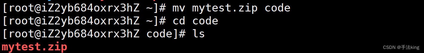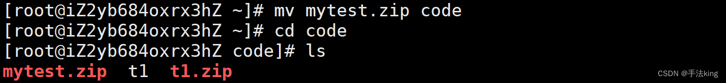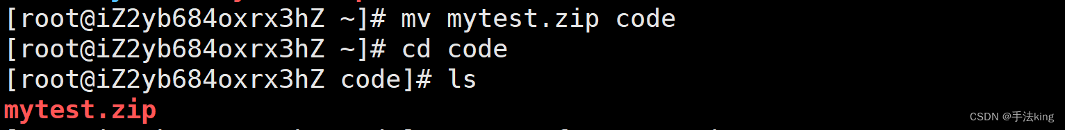 我们先移动压缩包至 code ;
