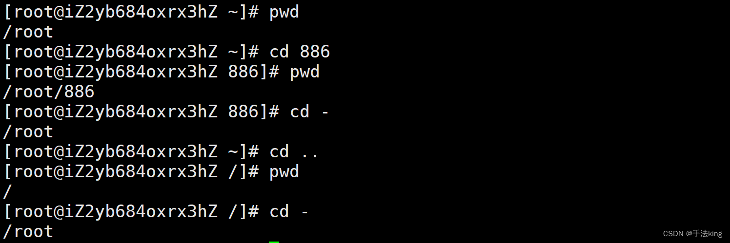 cd -: 返回最近访问目录