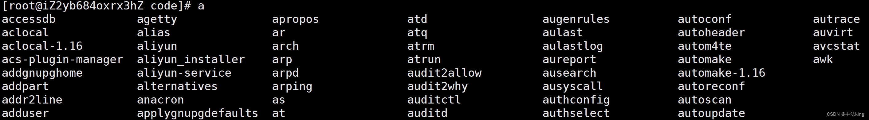 一个字符再加上 两下【tab】 就可以在程序里搜素含有 字符的指令了;