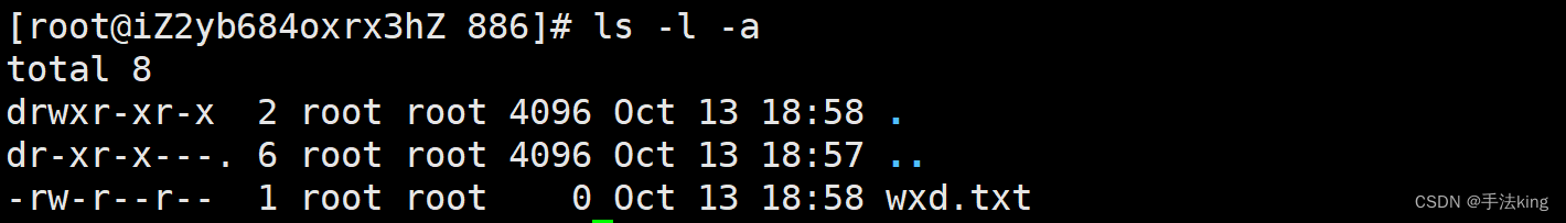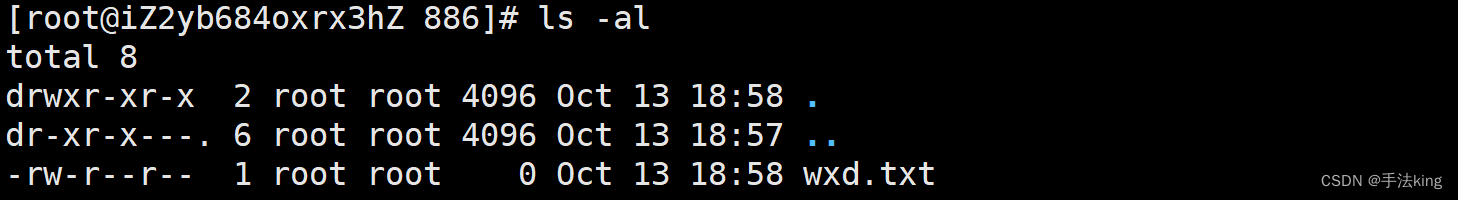 同理,ls -al 就可以打开包括隐式文件的文件属性信息了;