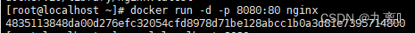 示例:(运行成功之后返回的这串数字就是容器的id,通过id可以查看容器的日志报告)