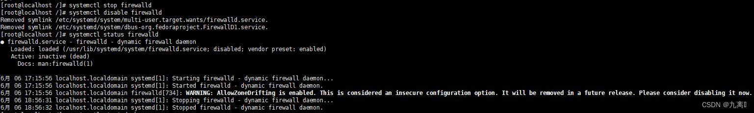 因为docker需要使用到各种端口,而某些端口又有防火墙保护,要使用他就需要手动去防火墙关闭这个端口,而逐一去修改防火墙设置十分的麻烦,因此我们直接关闭防火墙好了,命令: