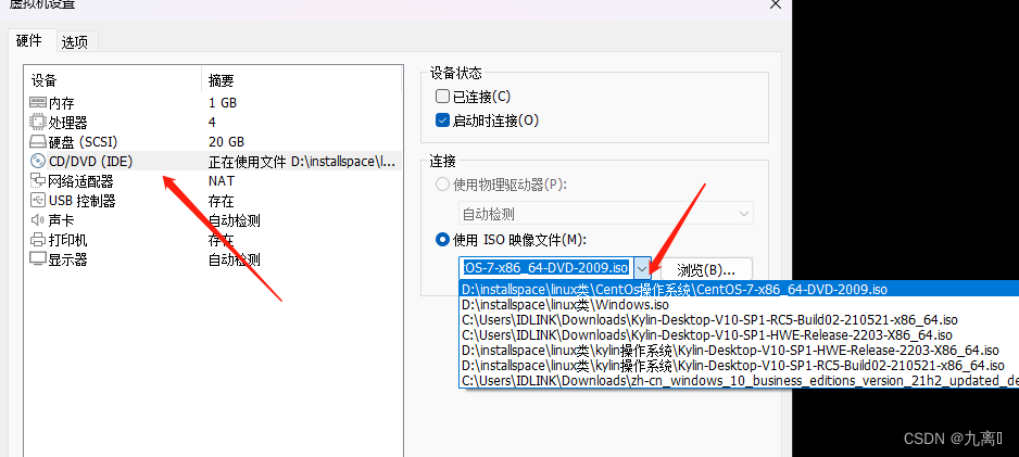 选择下载好的CentOS的iso映射文件,即操作系统: