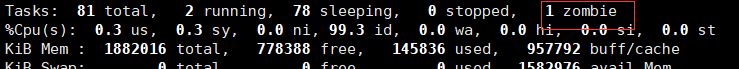 Z:僵尸进程,该类型进程已经结束,但父进程还没回收其资源