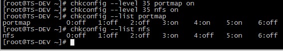 # chkconfig --level 35 portmap on # chkconfig --level 35 nfs on