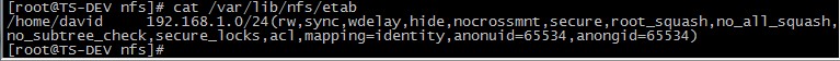 NFS有很多默认的参数,打开/var/lib/nfs/etab 查看分享出来的/home/david/ 完整权限设定值。