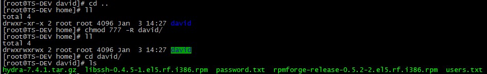 # chmod 777 -R /home/david/