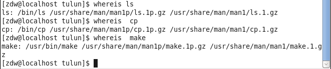 whereis + 命令:搜索命令所在目录 和 帮助文档路径