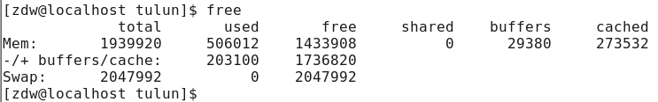 free:显示系统运行的统计信息:内存 缓存 缓冲 交换分区