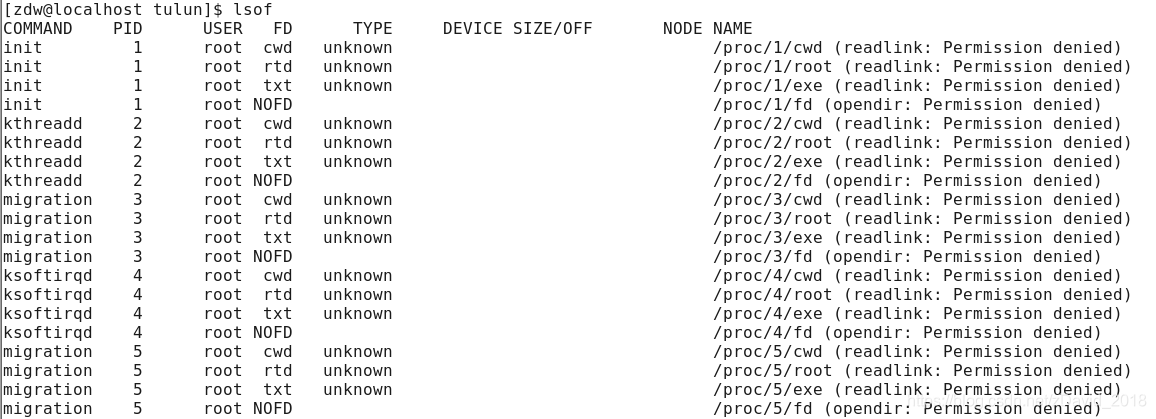 lsof:(list open file):显示系统当前打开的所有文件描述符,所有所有。。。所有