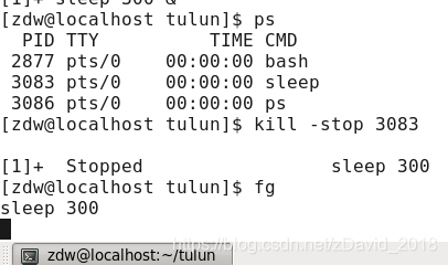 fg 任务号:将挂起的进程放在前台执行