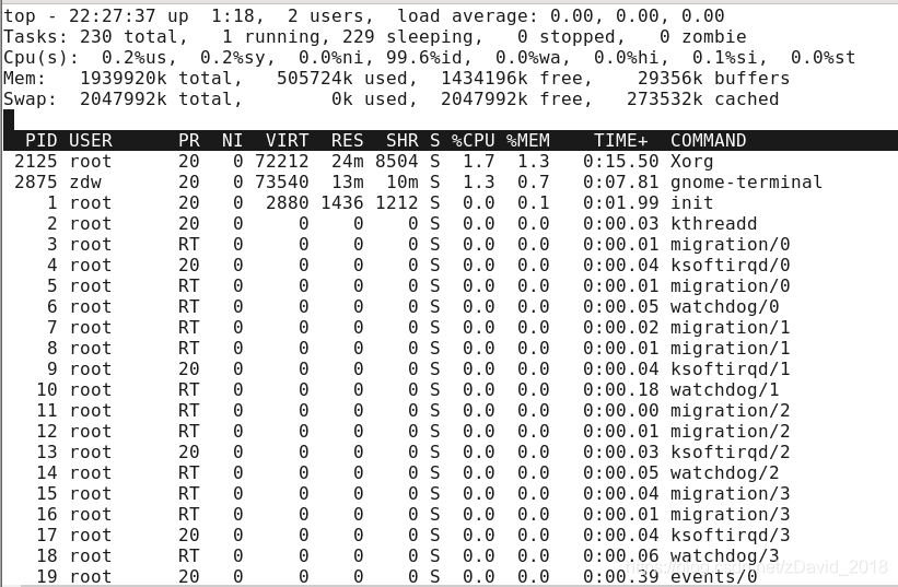 top:动态显示进程信息和系统运行统计信息