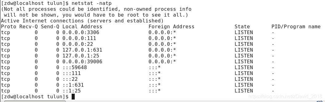 netstat:打印本地网卡接口上的全部连接、路由表信息、网卡接口信息。常用:显示tcp连接以及状态。
