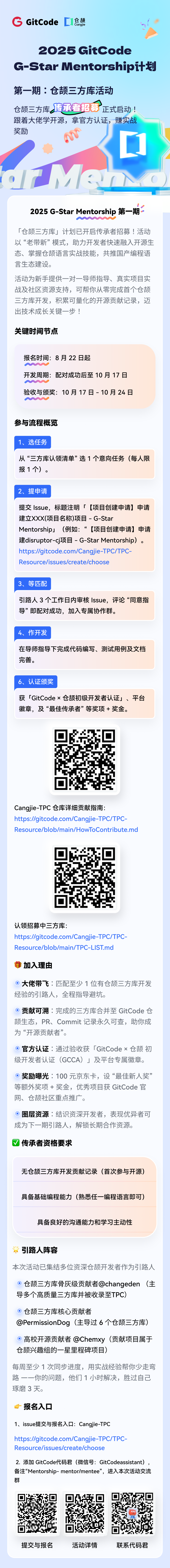 现在,机会来了 ——2025 G-Star Mentorship・仓颉三方库计划正式启动传承者招募!