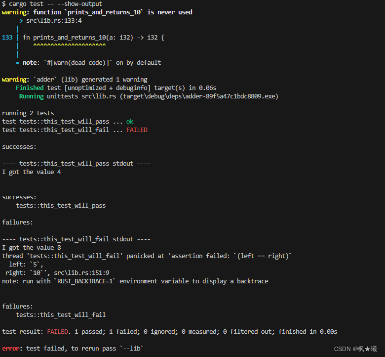 此外,Rust 还独具“文档测试(doc test)”机制: