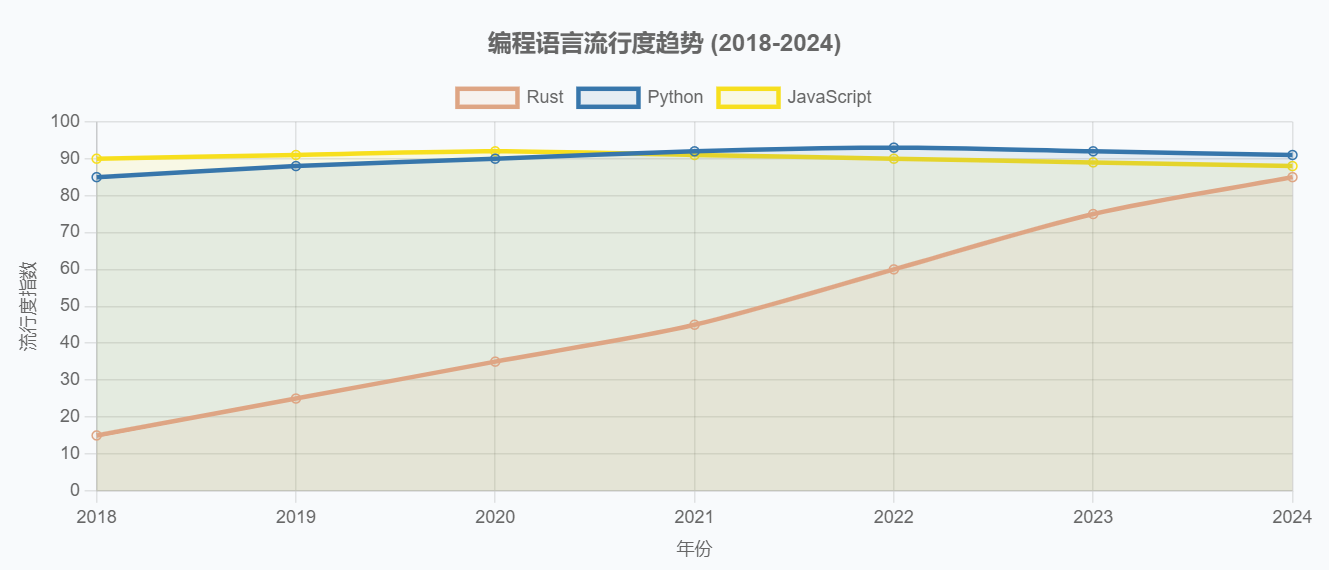 | 依赖管理 | ✓ Cargo.toml,语义化版本控制 | ✓ package.json,语义化版本控制 | ✓ requirements.txt,版本控制较简单 |