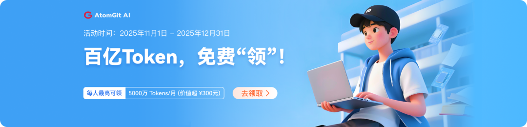 AtomGit AI 社区开放 “百亿Token,免费领” 活动,最高每月可领取超 1 亿 大额免费Token!