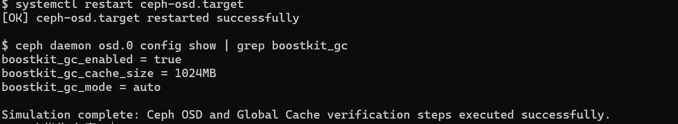 ceph daemon osd.0 config show | grep "rbd_cache_target_type" | grep "boostkit_gc"