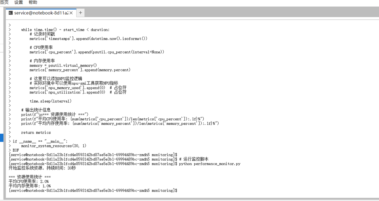 print(f"平均CPU使用率: {sum(metrics['cpu_percent'])/len(metrics['cpu_percent']):.1f}%")