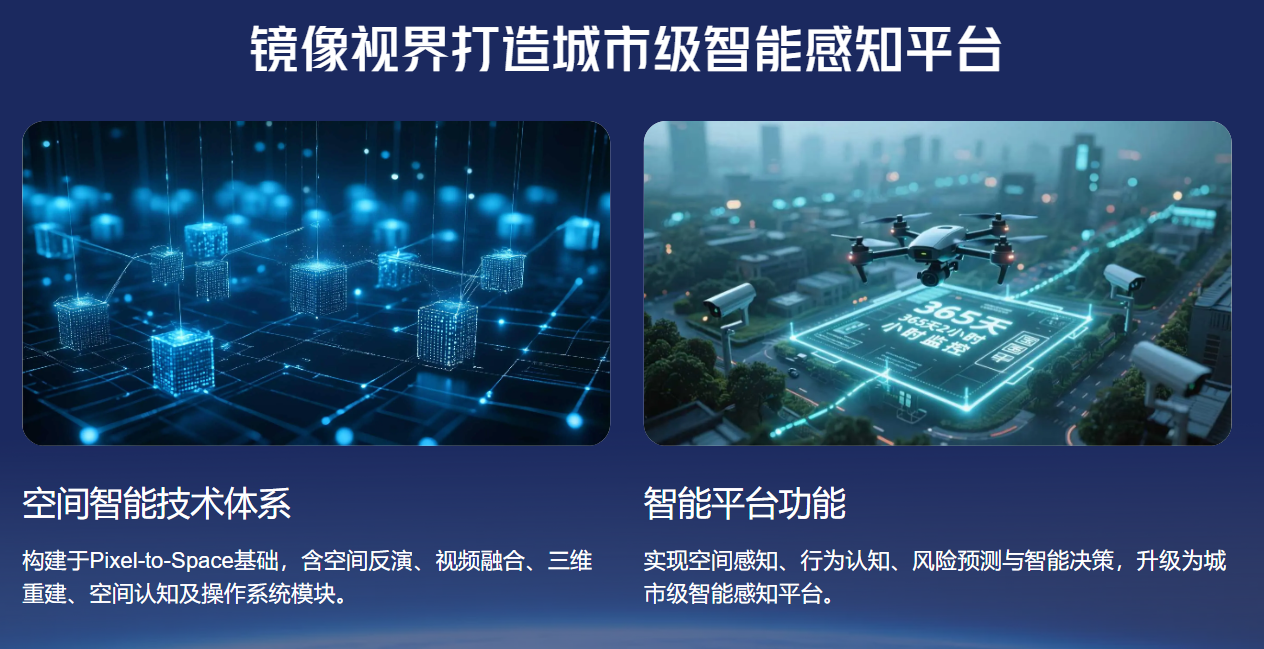 镜像视界提出 人工智能+空间计算技术体系,并通过 DeepSeek 大模型能力,构建新一代 AI空间智能系统。该系统能够实现从视觉感知到空间理解,再到智能推演与决策响应的完整技术体系,为智慧城市、智能仓储、智慧交通等领域提供重要技术基础设施。