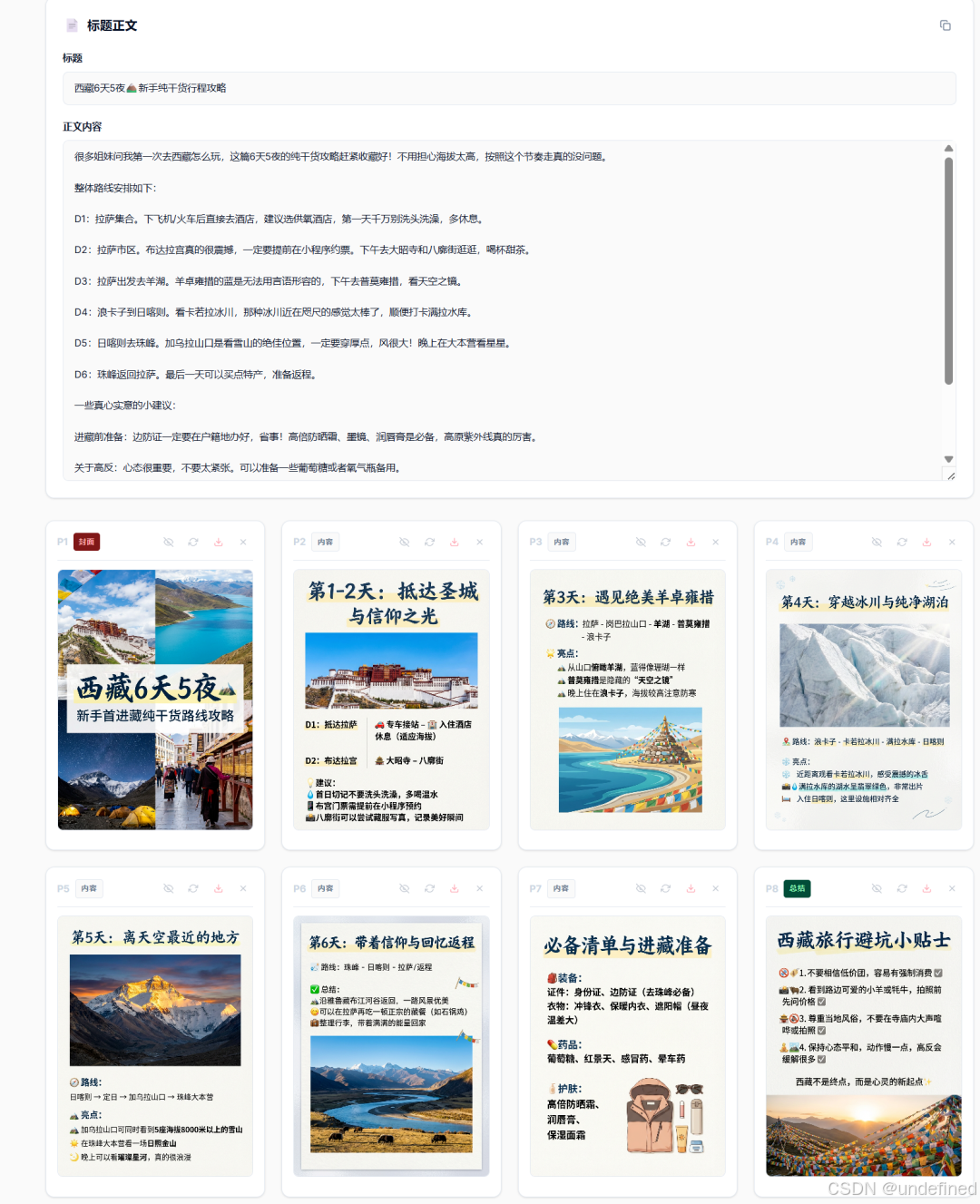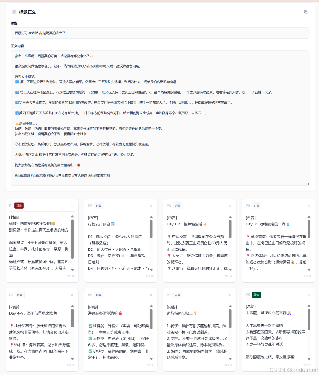 第二步:生成对应的标题、正文以及每一张图的图片描述。它会自动帮你把 9 宫格的每一张图要放什么文字、配什么背景都规划好。