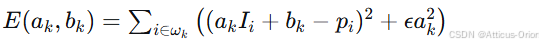 为了确定线性系数 a_k, b_k,我们最小化以下代价函数(输出图像与输入图像 p 的差异):![]()