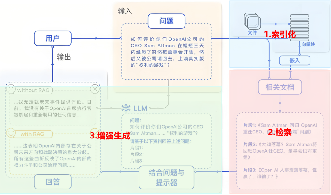 系统会将找回来的知识和你的原始问题组合在一起,形成一个新的指令(Prompt):