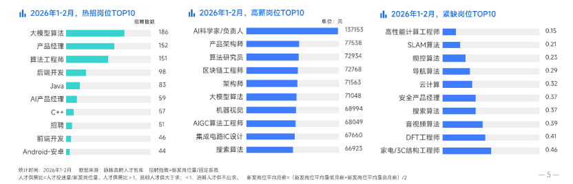 AI****岗位霸榜热招、高薪、紧缺三榜,高性能计算工程师7岗争1人