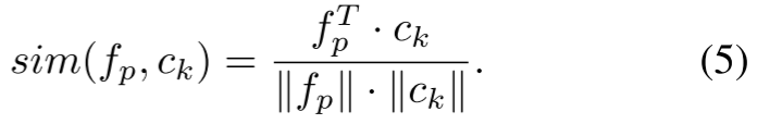 采用平滑激活来软选择与初始质心有意义相似的像素,在训练过程中平衡选择性和梯度流。归一化因子