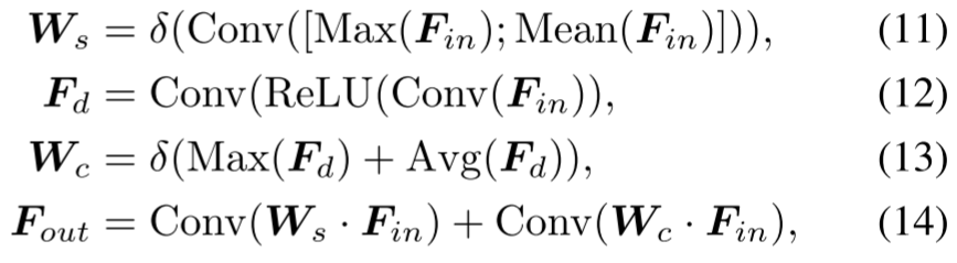 为了解决由质心聚集引起的高频细节丢失问题,SCFM 与权重反演阶段并行进行。采用双分支注意(空间+通道),最大限度地提高输入输出特征之间的互信息[33]: