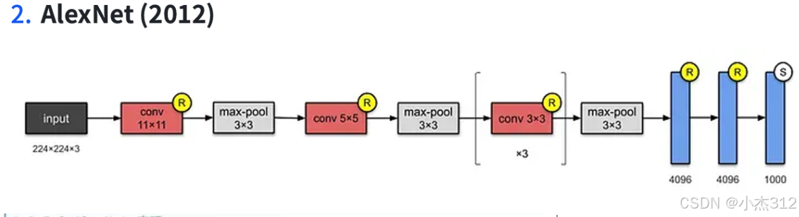 历史意义:以压倒性优势赢得ImageNet图像分类竞赛(Top-5错误率从26%降至16%),标志着深度学习时代的正式来临。