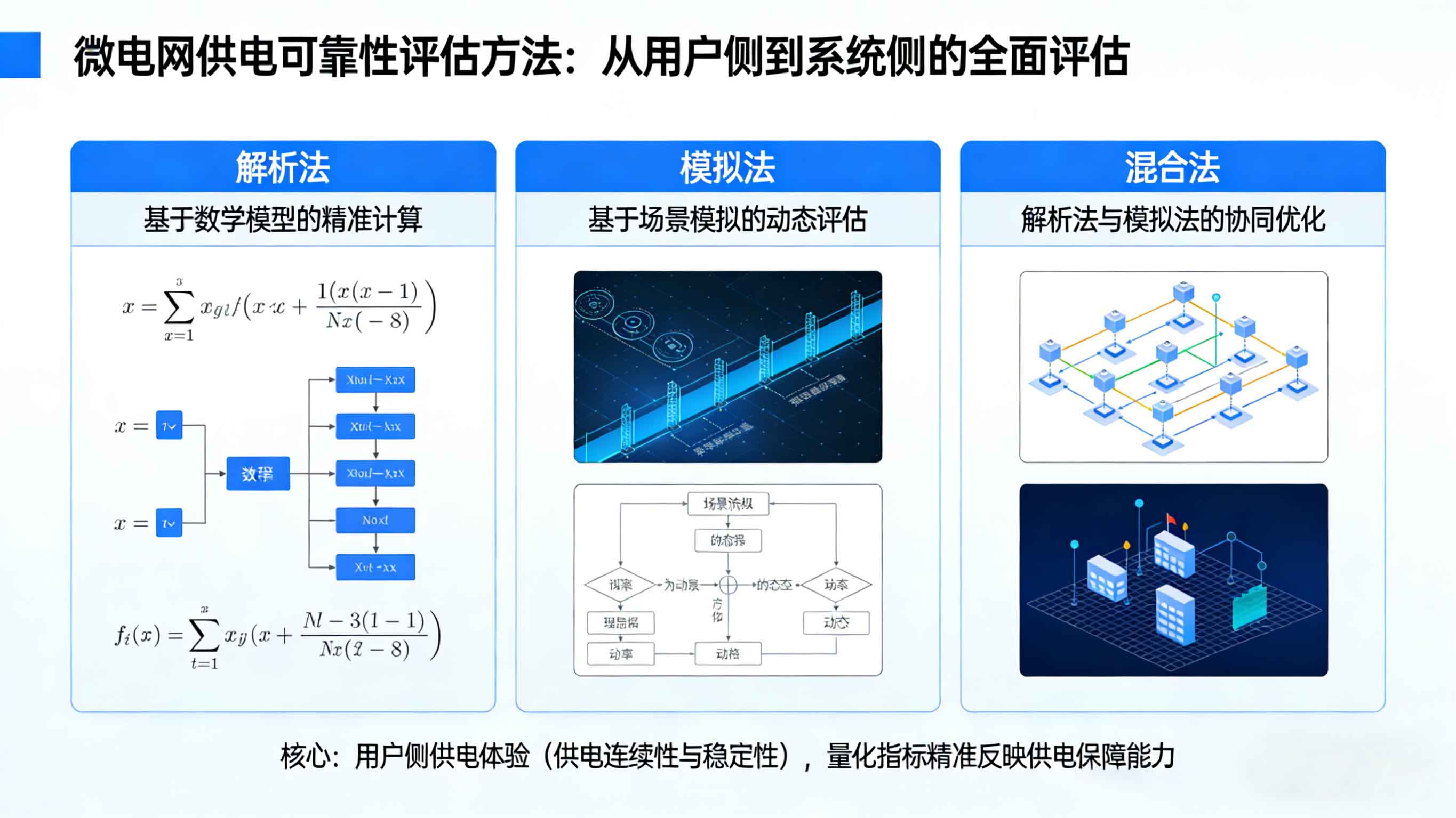 三、微电网供电可靠性的评估方法:从用户侧到系统侧的全面评估