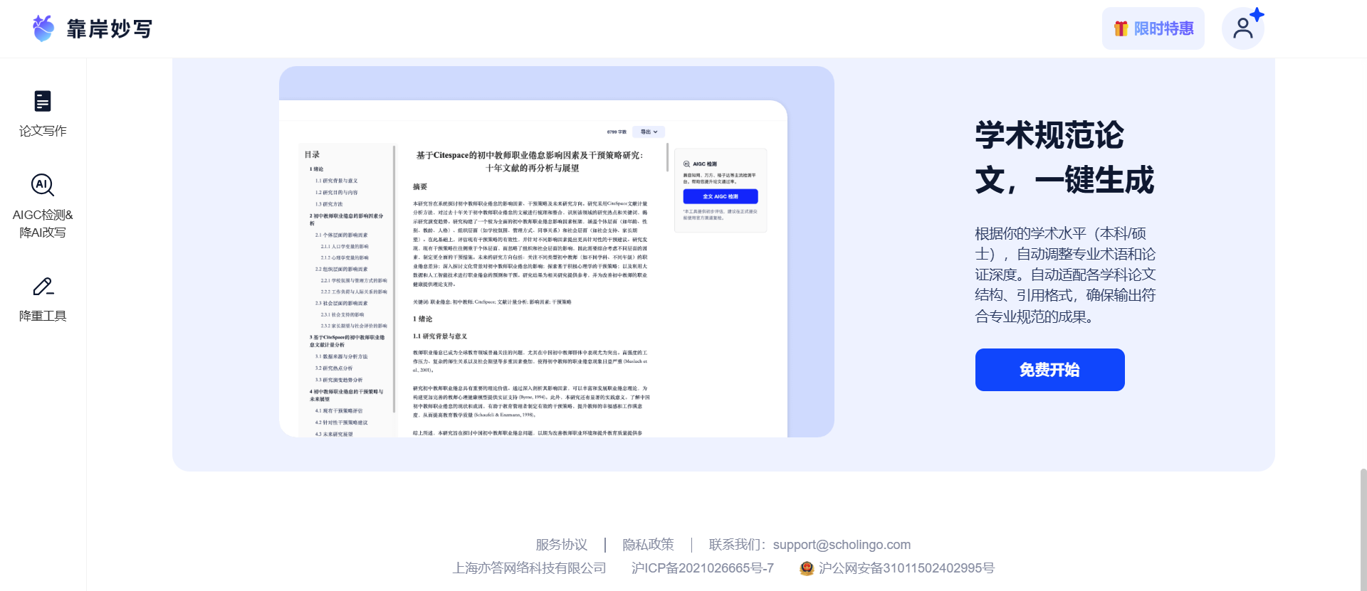 选择错误的工具,不仅浪费金钱,更可能让你陷入学术不端的泥潭。而Scholingo靠岸妙写的价值在于,它让你站在了规则的“安全区”,让你利用AI提升效率,而不是被AI拖累。它让你从繁琐的文字工作中解放,真正聚焦于你研究的核心——思想与创新。