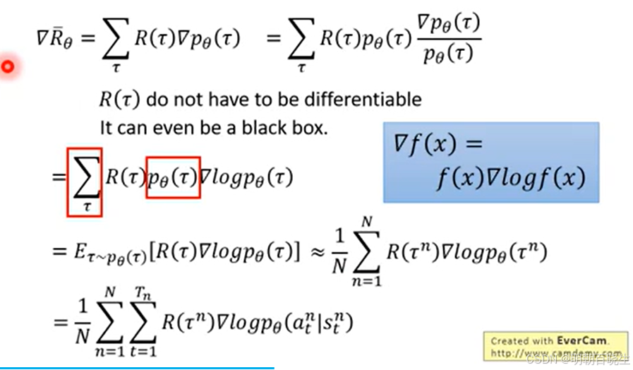 计算R的时候,不是计算整个epsiode return ,而是计算当前时刻之后的return,比如上图最后都是-2,即累积奖赏R的计算方式发生变化,如下