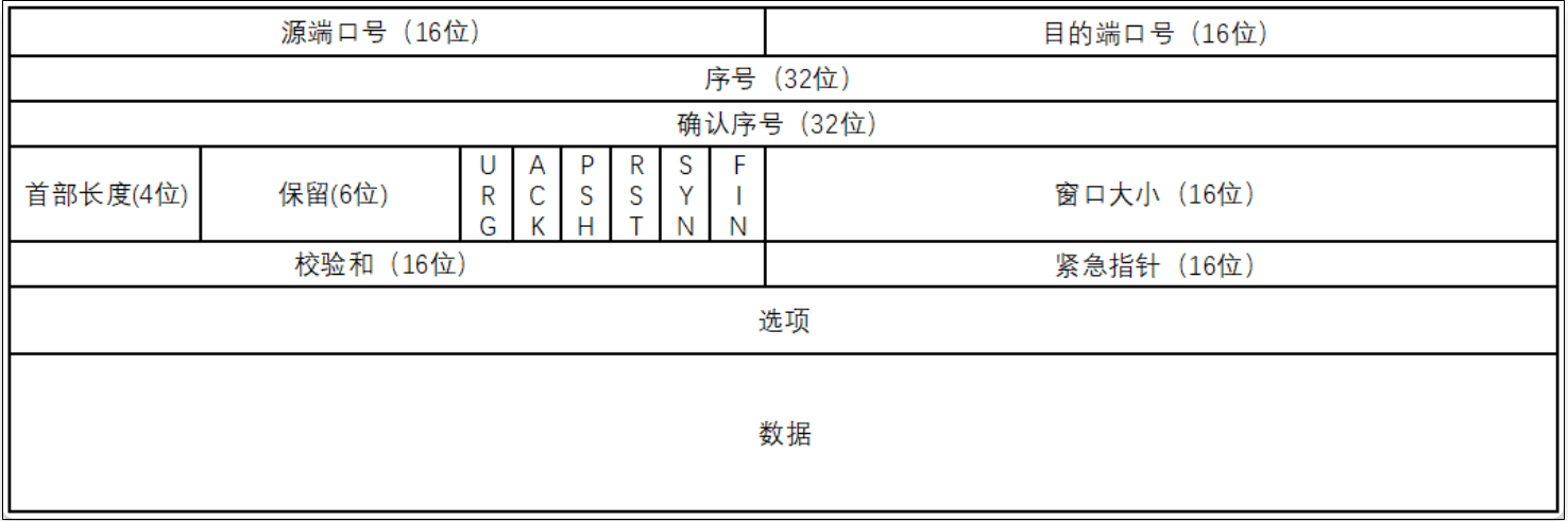确认序号:首部长度--头部长度--可变长头部(20-60字节)