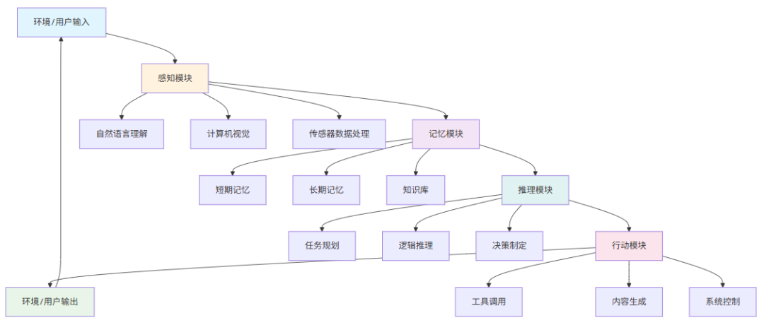 感知 → 思考 → 行动 → 反馈 → 感知…