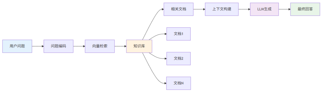 - 知识存储:将大量文档转换为向量存储在数据库中