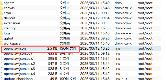 所以找openclaw挂载的位置找到下面的json,编辑