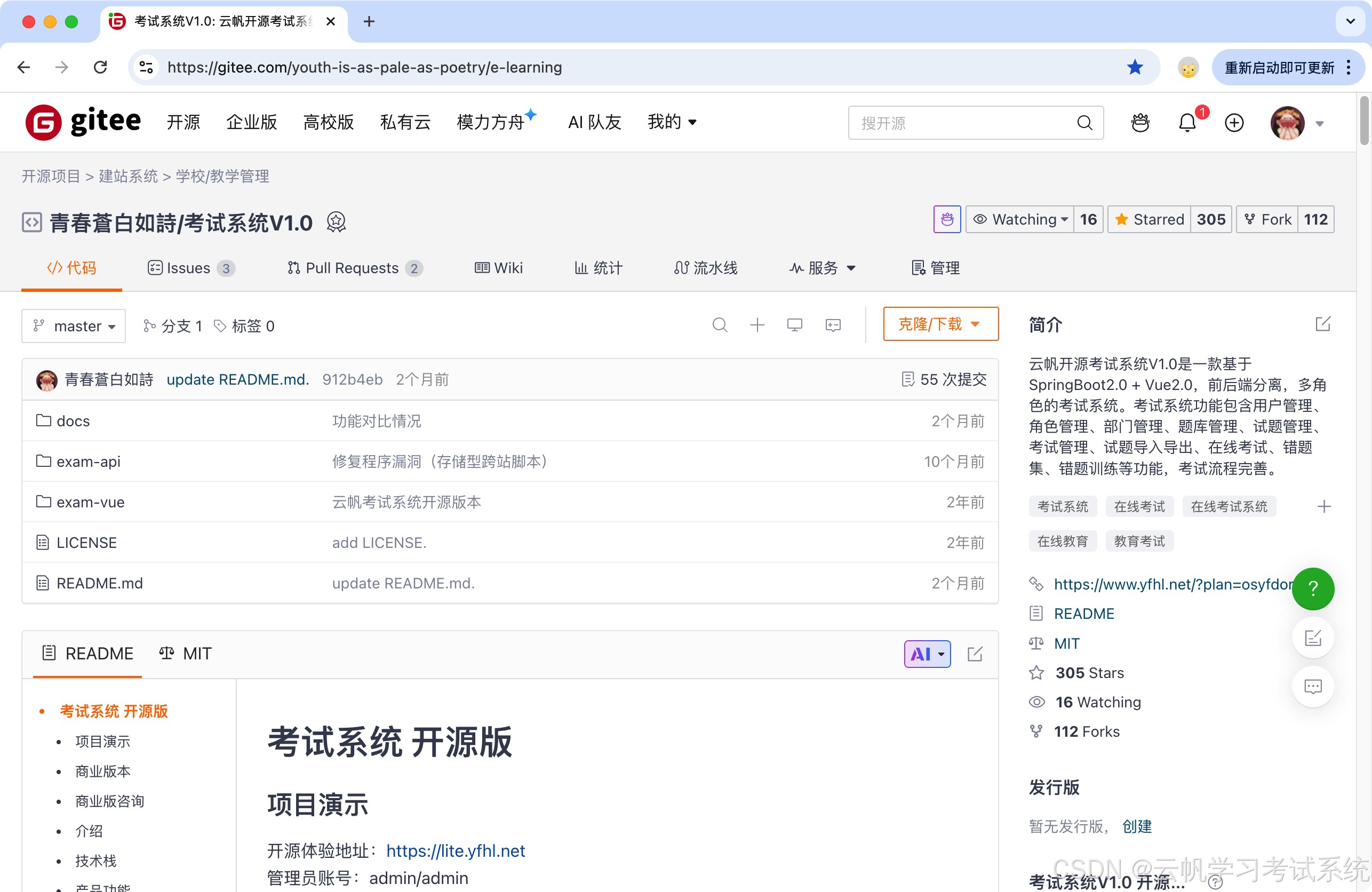 在数字化转型的浪潮下,在线考试系统凭借其便捷性、高效性和灵活性,逐渐取代传统纸笔考试,成为教育、企业培训等领域的重要工具。云帆开源考试系统正是顺应这一趋势,依托Java+Vue技术栈构建的前后端分离多角色考试系统,为各类考试场景提供全方位、专业化的解决方案。