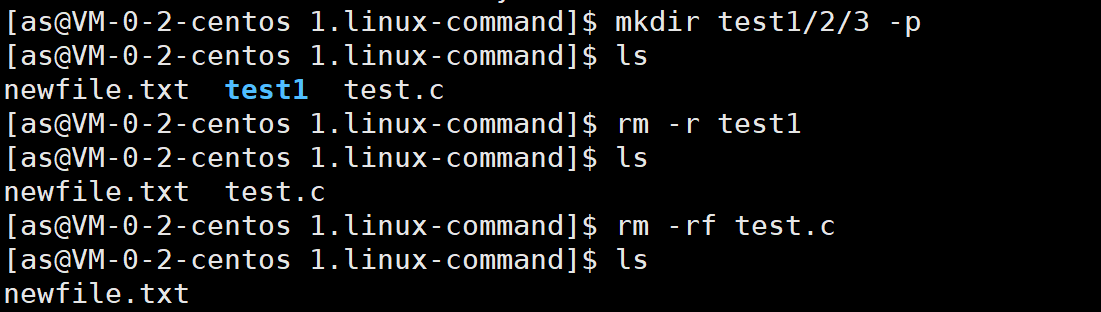 [as@VM-0-2-centos 1.linux-command]$ rm -rf 1