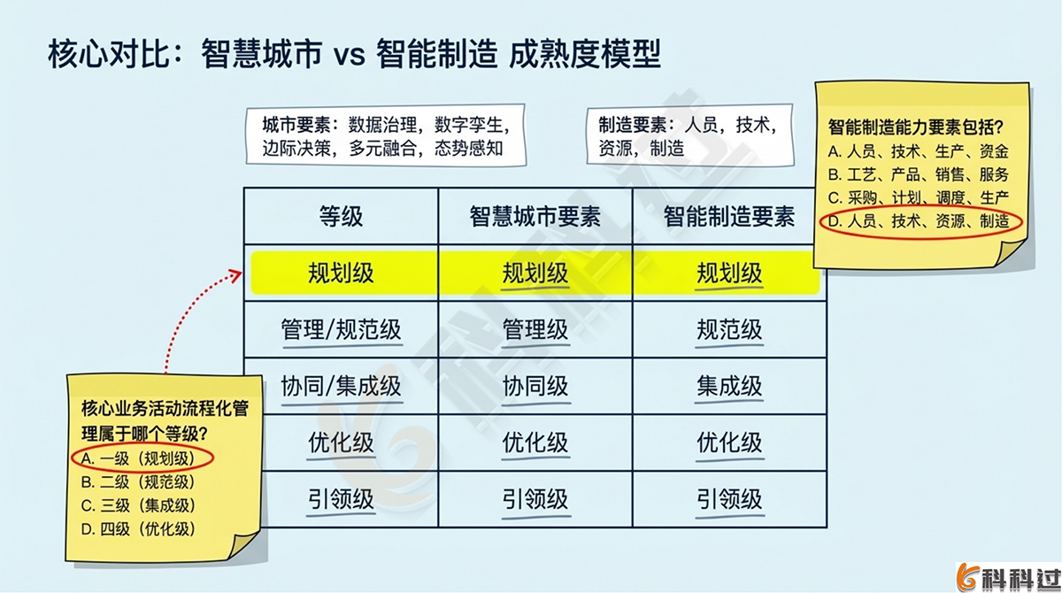 详细解析:《智能制造能力成熟度模型》明确提出了智能制造能力成熟度等级提升的关键方面,也就是能力要素,主要包括人员、技术、资源和制造。