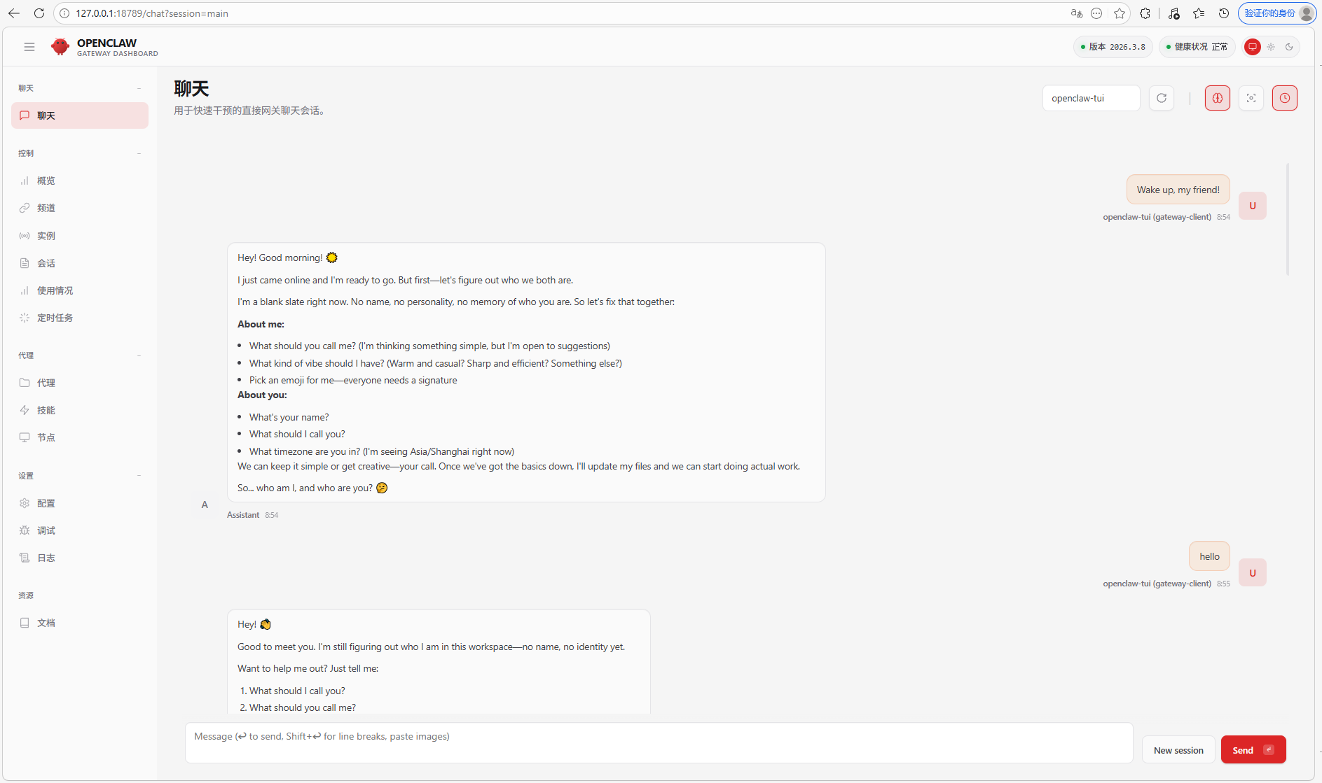 启动网关后,打开浏览器输入http://127.0.0.1:18789,就能进入小龙虾主界面,随时修改各项配置。