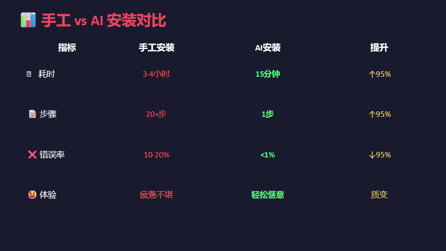 - AI方式:10次 × 15分钟 = 2.5小时