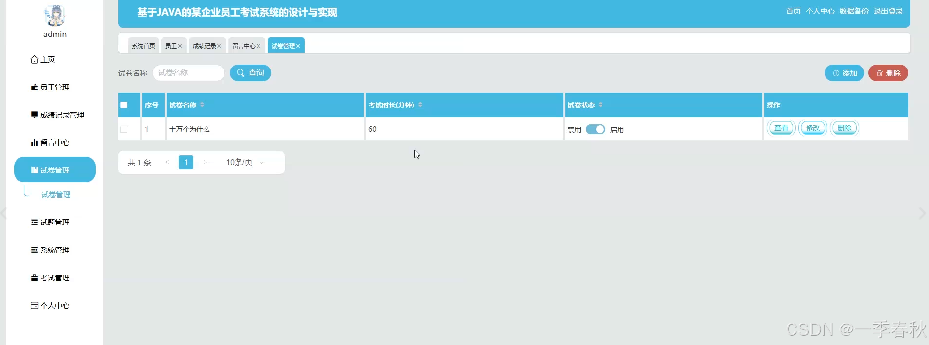 基于SpringBoot+Vue的某企业员工考试系统毕设项目(完整源码+论文+部署)