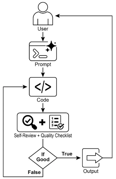 以代码生成场景为例,AI程序员拿到任务后,先生成代码初稿,但不会立即提交,而是先进行自我评审,它会将自己的代码与质量检查表逐项对比,像QA检查员一样自查。