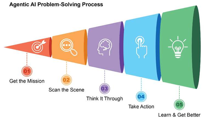 智能体遵循“获取任务目标——扫描环境信息——制定计划——执行行动——学习与优化”的五步循环来完成任务。